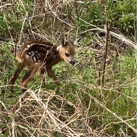 In de lente brengen vrouwtjes, bekend als geiten, hun jongen ter wereld in het hoge gras of bosranden (zie het onderwerp over het maaien van weilanden). Het aantal jongen kan verschillen, maar varieert meestal tussen een tweeling of drieling. De jongen, kalveren genaamd, worden geboren met een gevlekte vacht, waardoor ze beter gecamoufleerd zijn en beschermd worden tegen roofdieren.