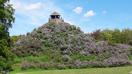 De heuvel werd beplant met paarse seringen van het soort dat ook nog eens lekker ruikt. Aan de voet van de heuvel ontwierp Twent een waterpartij met open weilanden daar omheen.